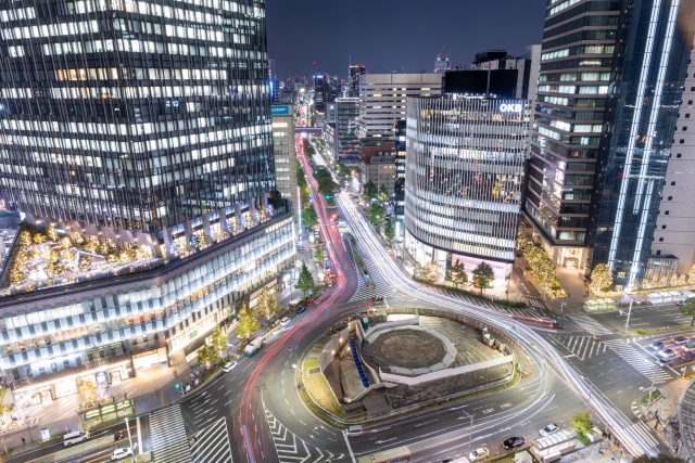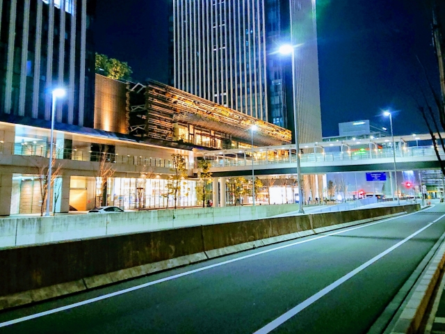 夜になると、ビルのライティングや広場のイルミネーションが加わり、洗練された都会夜景を楽しめます。