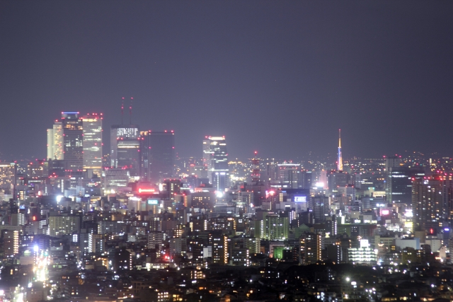 展望室からの夜景を撮る場合は、手ブレ対策が重要です。